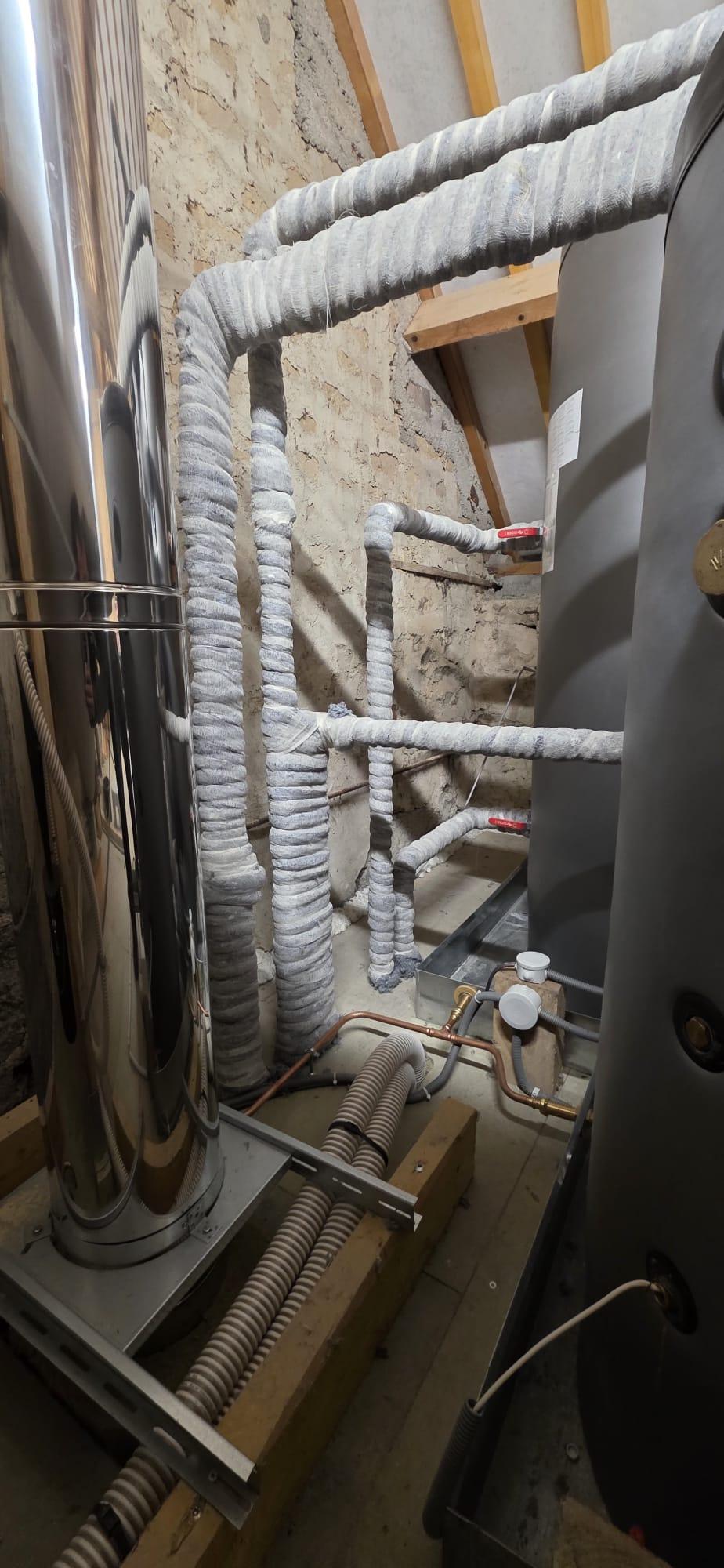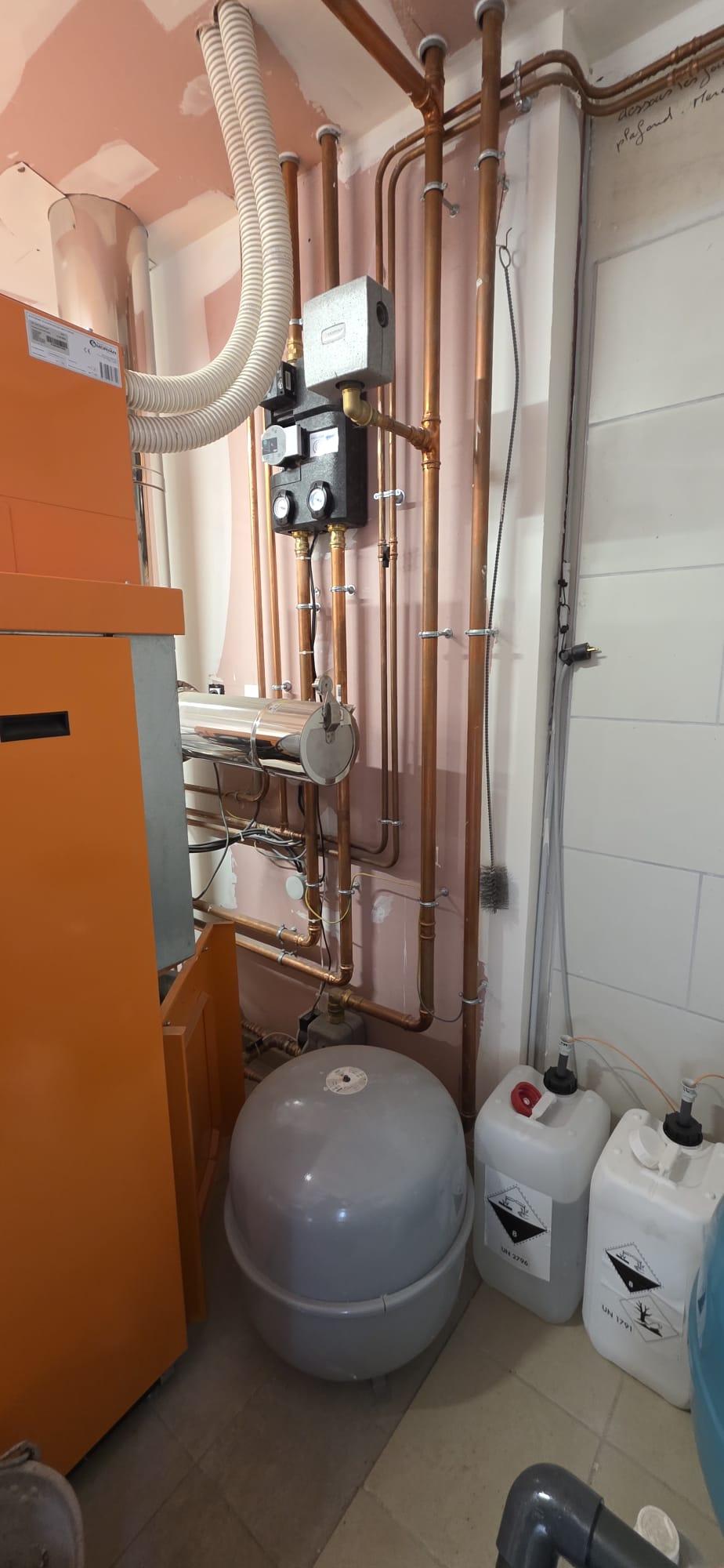 À Bagneux, dans la Marne, SARL Richard Energies a modernisé un système de chauffage en plusieurs étapes : dépose de l’ancienne chaudière et du conduit, réfection des tuyauteries aller-retour, puis installation d’une chaudière gaz à condensation Viessmann, plus performante et économique. L’entreprise a aussi réalisé un désembouage complet, posé un pot à boue et un vase d’expansion, avant de remettre le réseau de gaz aux normes pour garantir sécurité, conformité et efficacité.